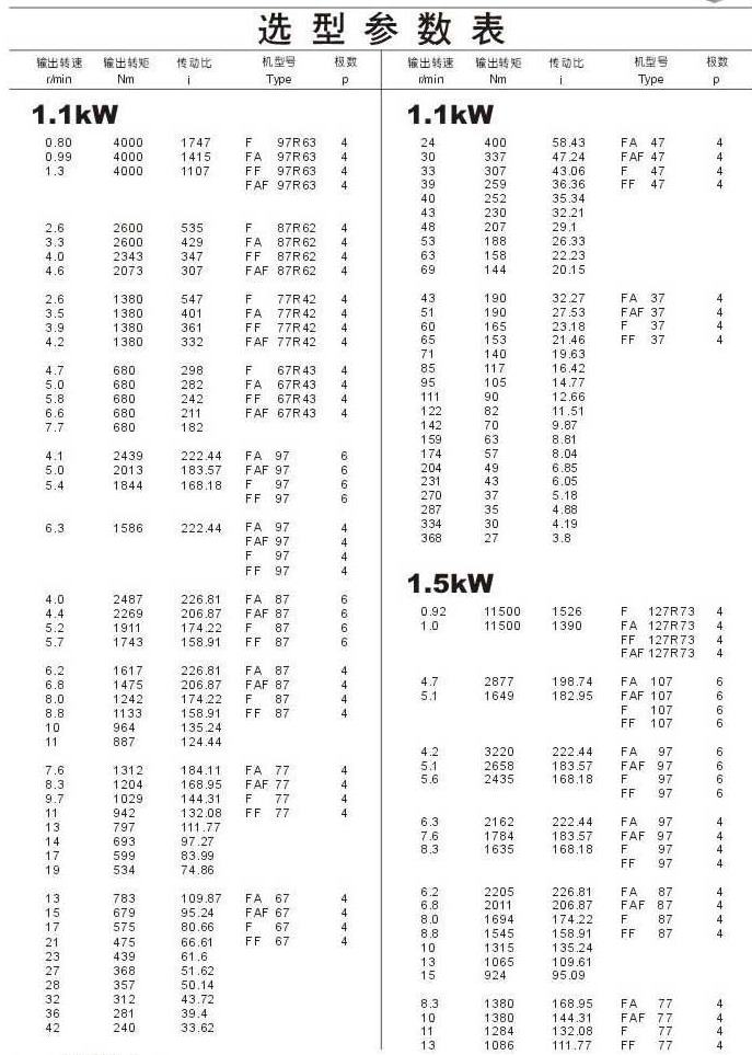 選型參數(shù)表1.1kW(續(xù)),1.5kW